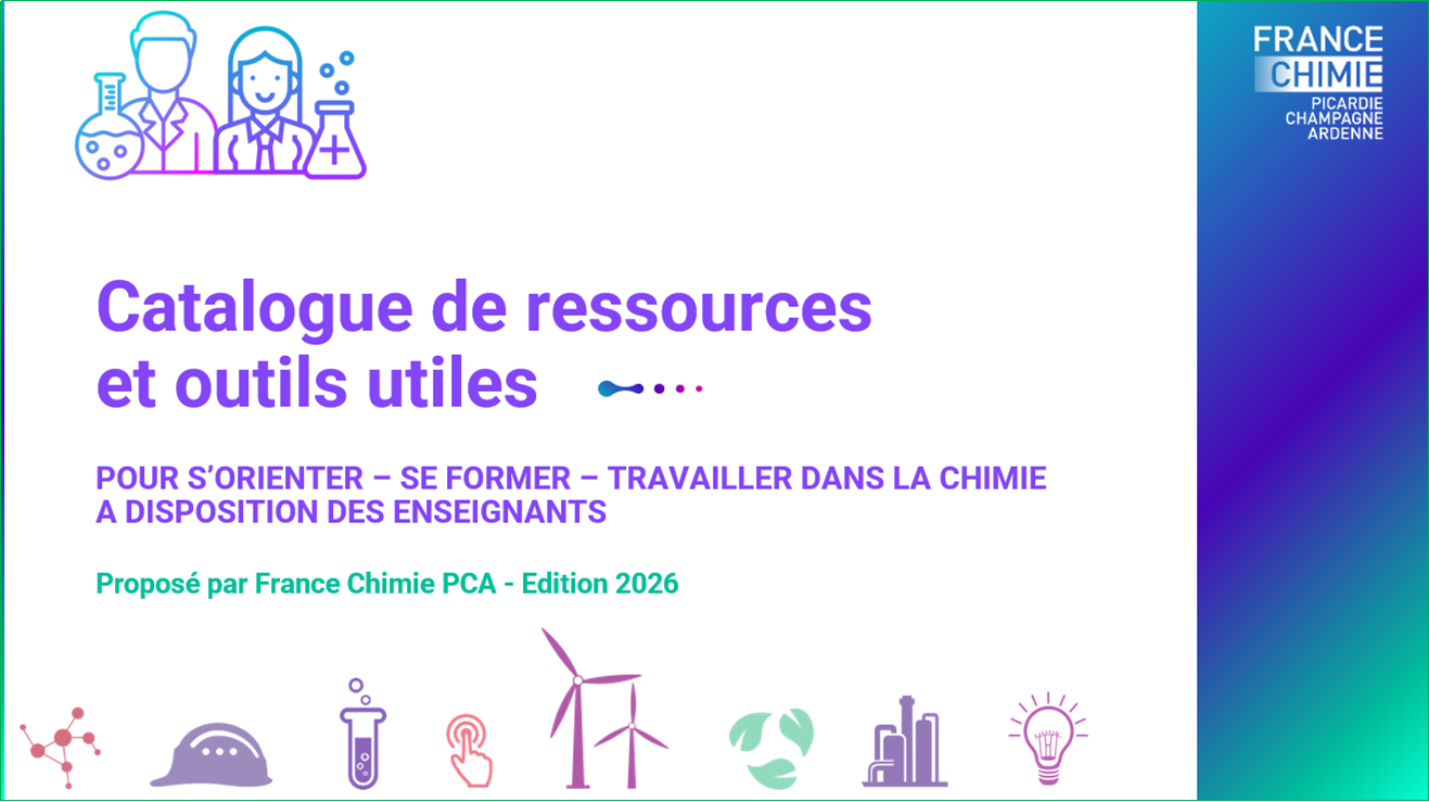 Des outils et des ressources France Chimie Picardie Champagne-Ardennemis à disposition des enseignants ou prescripteurs de l'orientation. Ces outils vous permettront de faire découvrir à vos élèves les entreprises de la chimie des territoires Picardie et Champagne-Ardenne mais aussi les applications de la chimie dans la vie quotidienne et la diversité des métiers proposés par ce secteur.